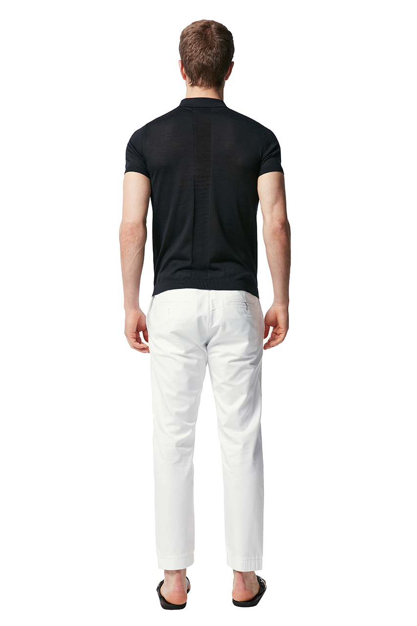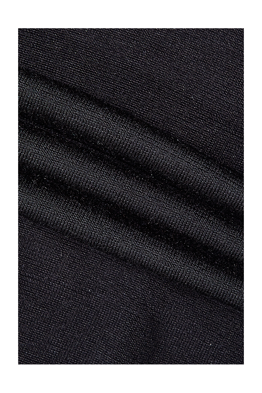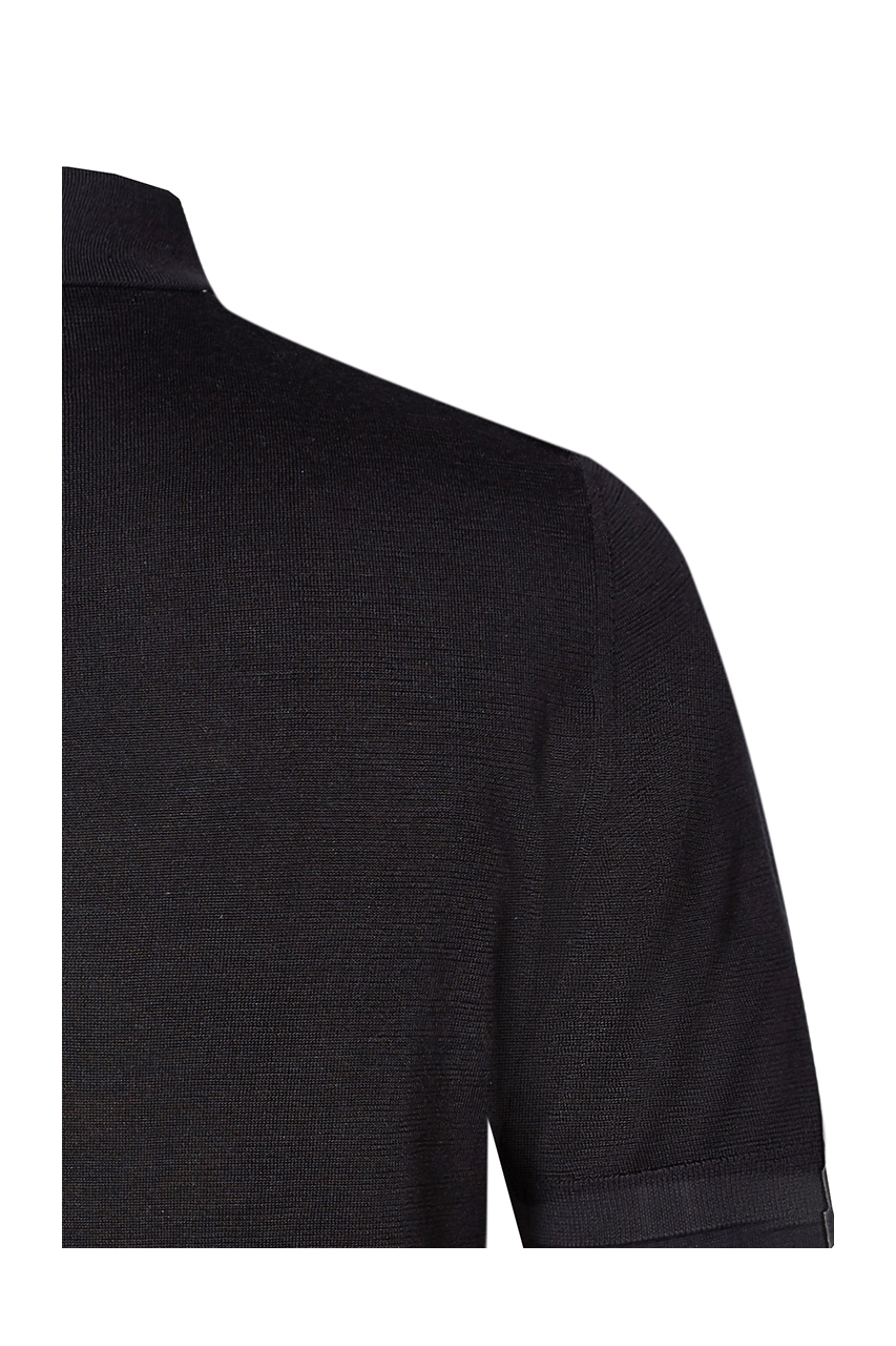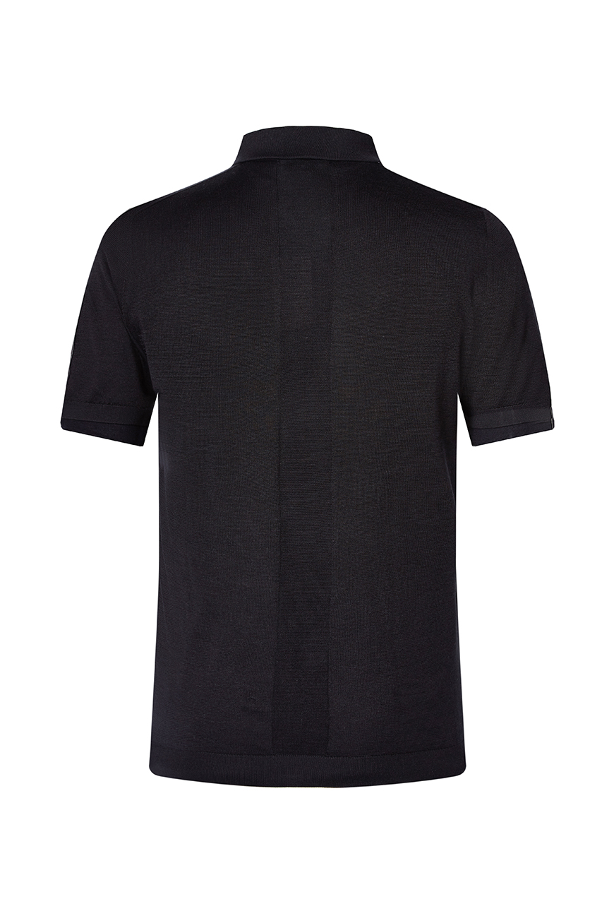 此款藏青色针织提花T恤为丝棉混纺,采取细腻针织法,视觉上品质感十足。胸口和肩部的提花带来低调的时尚气息。
